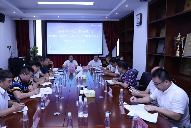 9月24日,广西建工集团联合建设有限公司召开“防风险、保安全、迎大庆”“严防死守100天”安全生产工作会议。公司党委书记、董事长陆彪出席并讲话。安全总监、副总经理张强,总工程师玉枭彤出席。
