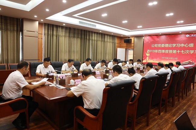 10月12日,广西建工集团第二安装建设有限公司党委理论学习中心组在六楼会议室召开2019年四季度暨第十七次集中学习会,学习习近平在庆祝中华人民共和国成立70周年大会上的重要讲话精神。公司党委书记、董事长潘海洪主持会议,党委副书记、总经理赵泽俊及领导班子成员和党委委员黄水保、莫雄清、林建明、韦智中、江静、陶兴南参加。