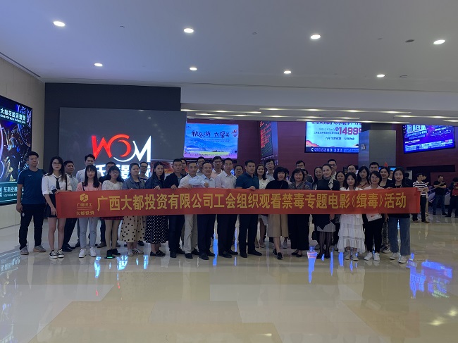 10月19日,广西大都投资有限公司工会组织员工代表到南宁万象城沃美影院集中观看禁毒影片《缉毒》。