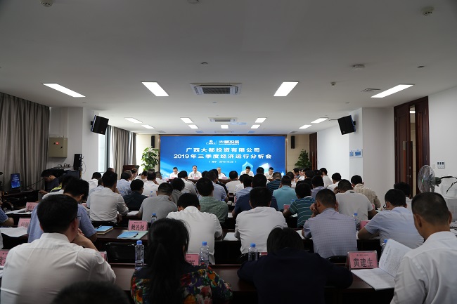 10月22日,广西大都投资有限公司2019年三季度经济运行分析会在建工大厦1号楼6楼会议室召开。公司党总支书记、董事长邓少新出席并讲话,总经理韦式汇作公司三季度经济运行分析报告。公司党总支副书记、副总经理、工会主席胡朝春主持。副总经理陈嶷、李世强出席。