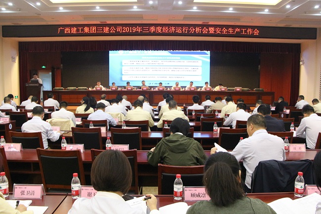 10月23日,广西建工集团第三建筑工程有限责任公司2019年三季度经济运行分析会暨安全生产工作会在公司12楼会议室召开。公司党委书记、董事长欧志永出席会议并讲话,公司党委副书记、总经理张凯作经济运行分析报告。集团第五监事会主席张济璜,在家领导班子成员罗振中、董家胜、梁德初、张青蓝、覃承敏出席。副总经理李克领主持。