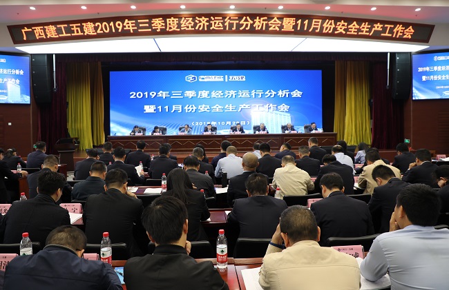 10月29日,广西建工集团第五建筑工程有限责任公司2019年三季度经济运行分析会暨安全生产工作会在五建大厦14楼会议室召开。会议总结分析公司前三季度经济运行情况及10月份安全生产检查情况,研究部署下一阶段工作。公司党委书记、董事长黄鼎龙出席并讲话,公司党委副书记、总经理蒙勇作公司三季度经济运行分析报告,副总经理黄诚主持。集团公司第四、第五监事会主席张济璜,公司在家领导班子成员出席。