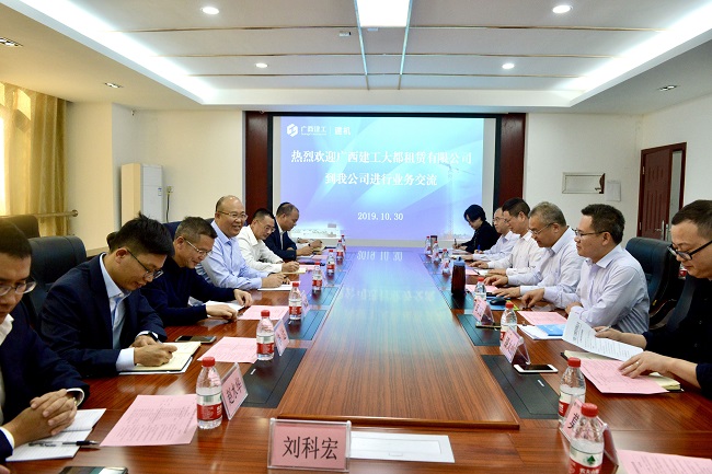 10月30日,广西建工大都租赁有限公司党支部书记、董事长黄安权带队到广西建工集团建筑机械制造有限责任公司开展工作交流。集团公司副总经济师、建机公司党委书记、董事长梁发深,副总经理邱方亮、韦红云、漆大山,大都租赁公司总经理唐广衎、安全总监赖坤权参加。