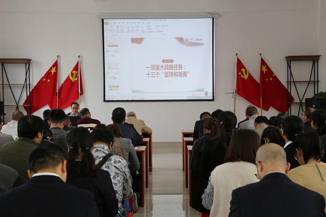伍志滨上题为“严守职业底线 坚持廉洁从业”的党课,雷振宁上题为“坚定不移做好新时代意识形态工作”的党课。