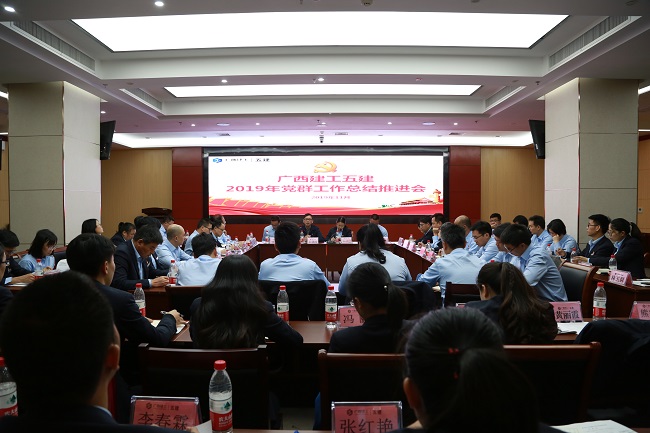 近日,广西建工集团第五建筑工程有限责任公司党委在2楼会议室召开2019年党群工作总结推进会,公司党委副书记、纪委书记、工会主席彭业波出席并讲话。