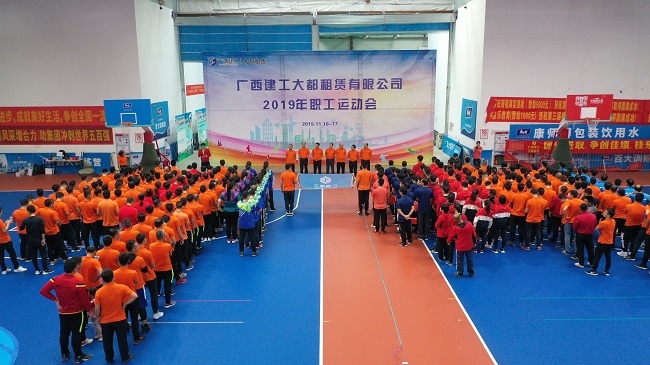 11月16-17日,广西建工大都租赁有限公司在南宁环球体育馆举办2019年职工运动会。集团公司工会副主席、机关党委书记、组织人事部部长毛晓冬,公司党总支部书记、董事长黄安权,总经理唐广衎,副总经理邓彦超、陈树华,安全总监赖坤权出席开幕仪式并观看比赛。