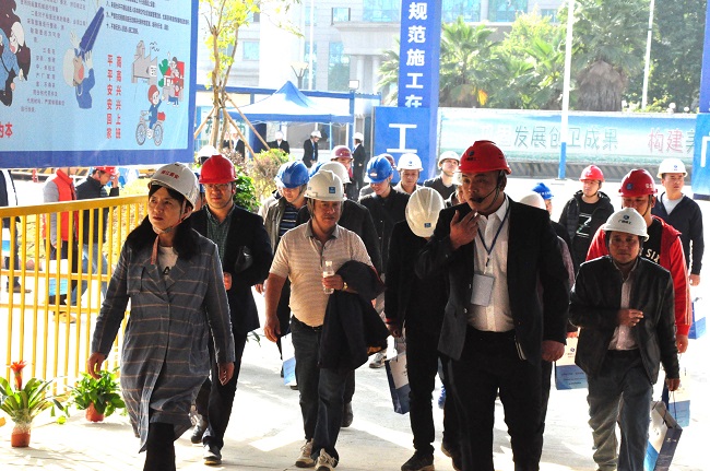 11月22日,柳州市柳江区建筑工地“绿色施工”现场观摩会在广西建工集团第二建筑工程有限责任公司承建的金龙湾华庭项目举行。二建公司安全总监黄元华出席。