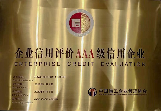 近年来,公司围绕打造诚信企业目标,以建立和完善诚信体系建设为突破口,以工程项目履约为载体,将诚信纳入企业核心价值观,深入践行“诚信为本”的经营理念,切实强化职工诚信教育,认真履行诚信责任,有力推动了公司诚信体系建设及运行。此次公司获评AAA级信用企业,是对公司在企业素质培养、诚信建设、经营状况、履约能力、社会信誉等方面所取得成绩的认同和肯定,将对公司在市场准入、招标投标、评先评优方面起到重要作用。