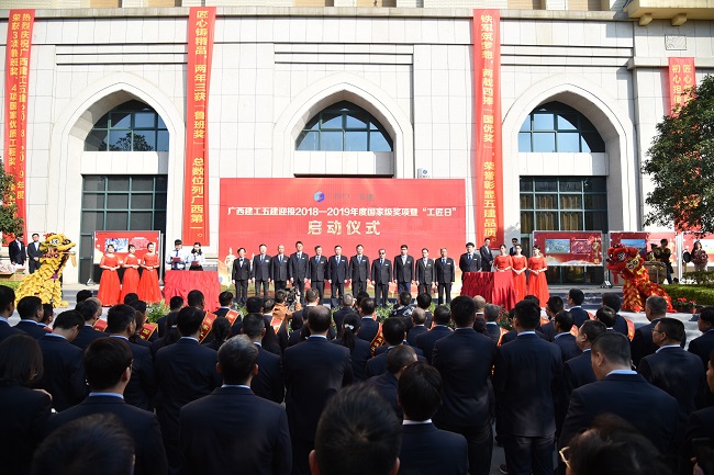 12月11日,广西建工集团第五建筑工程有限责任公司在五建大厦举办迎接2018-2019年度国家级奖项暨“工匠日”启动仪式。公司党委书记、董事长黄鼎龙出席并致辞,公司领导班子成员蒙勇、彭业波、黄诚、李能斌、陈永、何显文、陶礼智、岑锦秀出席。