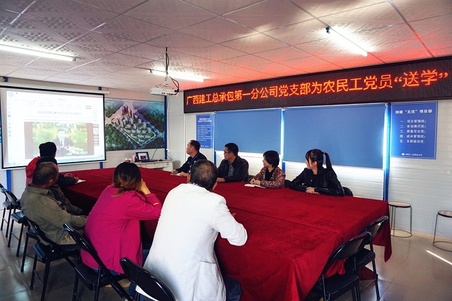 12月11日,广西建工集团建筑工程总承包有限公司第一分公司党支部面向在建项目农民工党员开展集中“送学”活动。