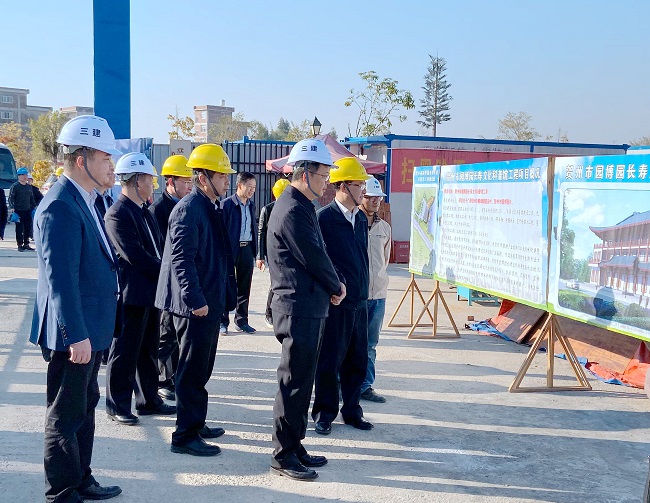 12月11日,贺州市委书记、市人大主任李宏庆到广西建工集团第三建筑工程有限责任公司承建的贺州园博园长寿科普文化馆项目调研。市委常委、常务副市长袁国华,市委常委、宣传部部长、副市长朱东参加。