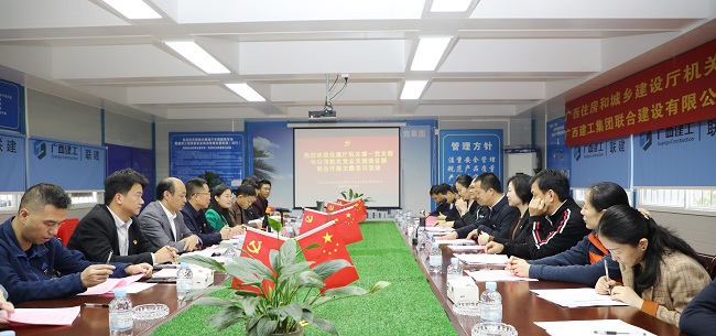 12月14日,自治区住房和城乡建设厅机关第一党支部和广西建工集团联合建设有限公司机关党总支在民族大饭店项目部联合开展主题党日活动。自治区住建厅机关第一党支部书记、行政审批处处长刘鸿铭,联建公司党委书记、董事长陆彪,党委副书记、纪委书记、工会主席向丹,党委委员、副总经理刘永忠参加活动。