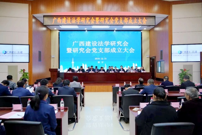 12月15日,广西建设法学研究会暨研究会党支部成立大会在五建公司综合楼召开。自治区法学会研究行业党委副书记朱育兆,广西建工集团第五建筑工程有限责任公司党委书记、董事长黄鼎龙出席。