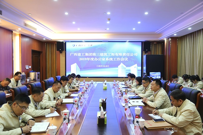 12月18日,广西建工集团第三建筑工程有限责任公司在十一楼会议室召开2019年度办公室系统工作会议。公司党委书记、董事长欧志永,党委副书记、纪委书记、工会主席罗振中出席会议并讲话。