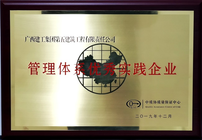 近日,从中国质量协会传来喜讯,广西建工集团第五建筑工程有限责任公司荣获“管理体系优秀实践企业”荣誉称号。