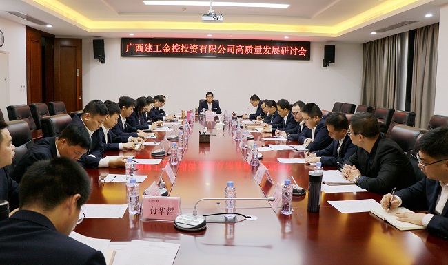 1月11日,广西建工金控投资有限公司在建工大厦1号楼920会议室召开高质量发展研讨会。公司党总支书记、董事长赵伯廷出席并讲话,副总经理蓝继壮、梁亮参加,党总支副书记、副总经理、工会主席陈白宇主持。