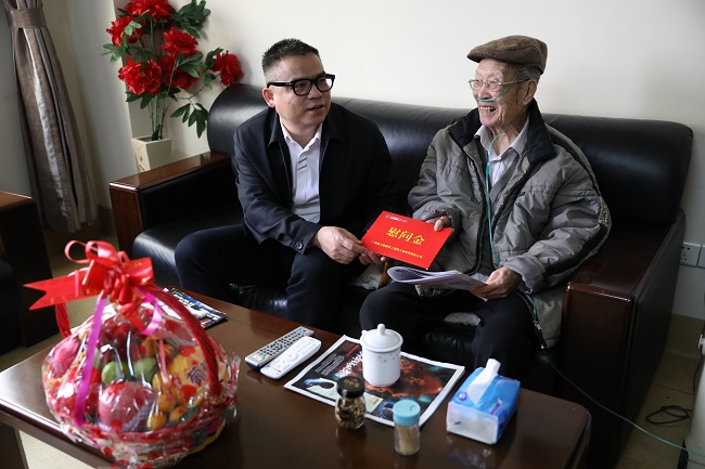 1月15日,广西建工集团第二建筑工程有限责任公司党委副书记、纪委书记、工会主席黄志坚带着公司党委、董事会的浓情关怀走访慰问离休干部、公司老领导、生活困难党员、老党员,并为他们送去慰问品、慰问金和节日祝福。