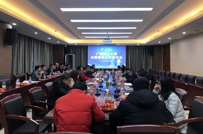 1月16日,南宁广卓资产管理有限公司在建工大厦1号楼2301会议室召开广西建工大厦后勤服务工作座谈会。集团公司董事会秘书、总经理助理、办公室主任陆志斌出席并讲话,集团公司办公室副主任、广卓公司董事长黄民亿主持。