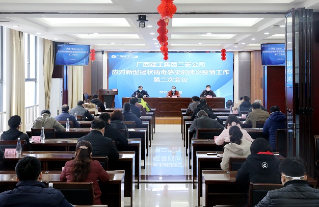 2月9日,广西建工集团第二安装建设有限公司在七楼会议室召开应对新型冠状病毒感染的肺炎疫情工作第二次会议,进一步贯彻落实自治区及集团公司关于做好新冠肺炎疫情防控工作的部署和要求,切实加强公司两级机关和项目工地复工应对新冠肺炎疫情工作。公司党委书记、董事长潘海洪出席并讲话,公司领导班子成员赵泽俊、莫雄清、林建明、韦智中、江静、陶兴南参加,黄水保主持。
