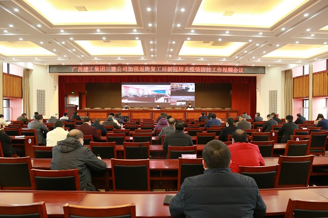 2月10日,广西建工集团第三建筑工程有限责任公司在12楼会议室召开加强返岗复工后新冠肺炎疫情防控工作视频会议,传达学习集团公司关于加强返岗复工后疫情防控工作部署要求,全力以赴做好公司疫情防控工作。公司党委书记、董事长欧志永出席并讲话,党委副书记、总经理张凯主持,公司领导班子成员罗振中、刘剀、李克领、梁德初、张青蓝、覃承敏、曾宇博参加。