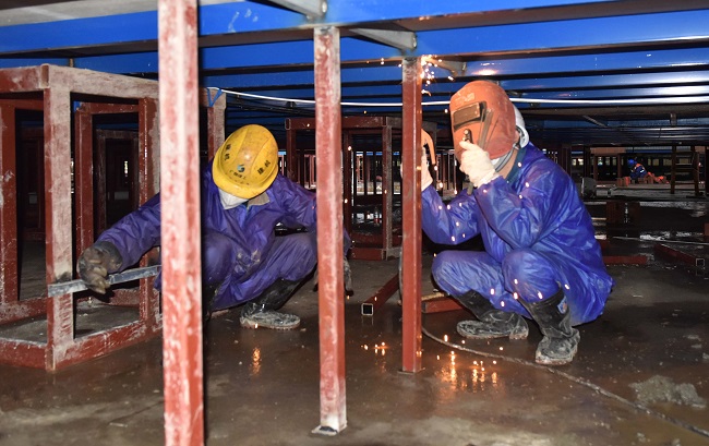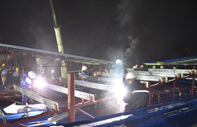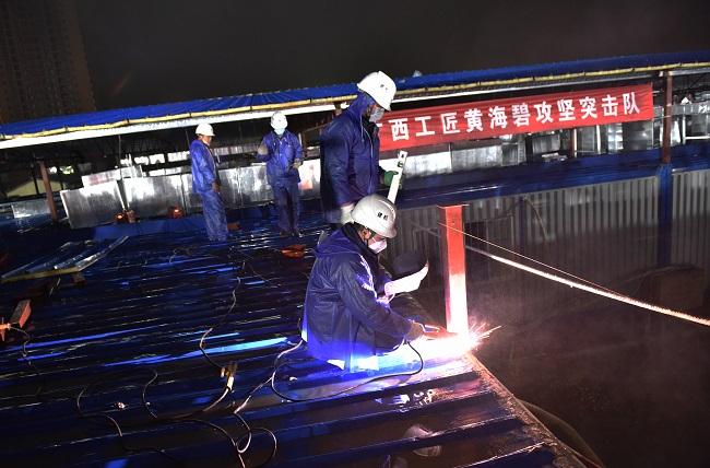 突击队通宵焊接屋面结构