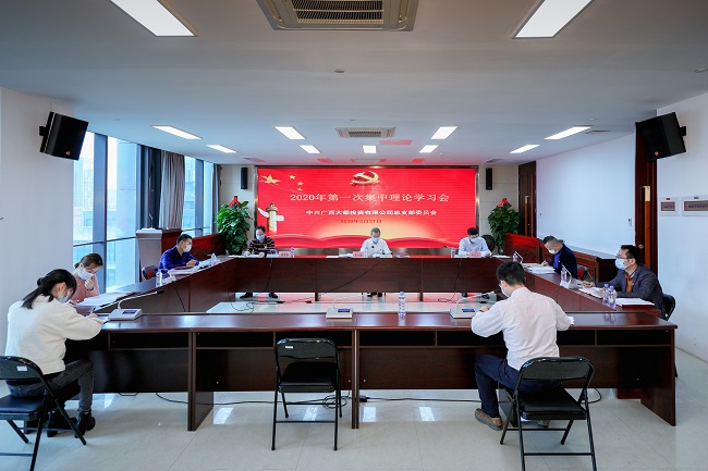 2月27日,广西大都投资有限公司党总支召开2020年第一次集中理论学习会,学习中国共产党第十九届中央纪律检查委员会第四次全体会议精神和《中国共产党国有企业基层组织工作条例(试行)》。公司党总支书记、董事长邓少新主持会议并作总结发言,公司在家领导班子成员韦式汇、胡朝春参加并发言。