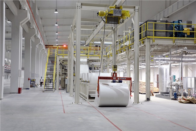 据悉,该项目是广西首个具备生产医疗级熔喷布能力的项目,也是亚洲第一条孖纺高分子吸附新材料生产线,总建筑面积33352.67㎡,其中生产车间22055.67㎡,成品库11238.10㎡,项目2018年6月开工,2020年1月10日竣工验收,2月28日正式投产使用。