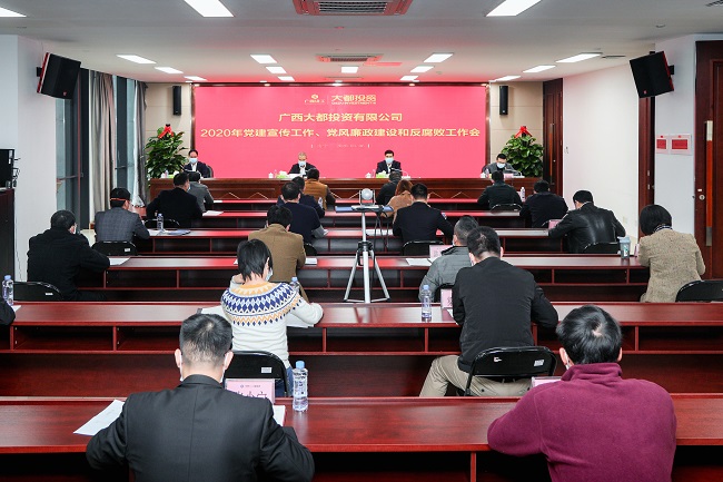 3月6日,广西大都投资有限公司党总支在6楼会议室召开2020年党风廉政建设和反腐败工作视频会议,贯彻落实上级会议精神,总结2019年工作情况,部署2020年任务。公司党总支书记、董事长邓少新出席并作工作报告,总经理韦式汇、副总经理陈嶷参加。党委副书记、副总经理、工会主席胡朝春主持会议。
