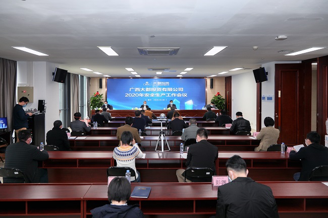 3月6日,广西大都投资有限公司在总部6楼会议室召开2020年安全生产工作视频会议,贯彻落实上级安全生产会议精神,总结2019年安全生工作,部署2020年任务。公司党总支书记、董事长邓少新出席并讲话,总经理韦式汇作安全生产工作报告,党总支副书记、副总经理、工会主席胡朝春主持会议,副总经理陈嶷参加。