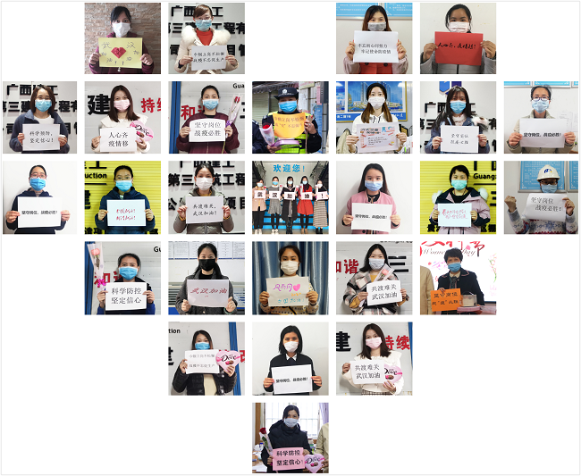 三建公司各分公司通过开展防疫一线慰问、微信群网络答题、主题作品征集等活动庆祝国际劳动妇女节,并为每一位女职工送上节日祝福和慰问品。其中南宁分公司女职工积极制作战“疫”内容的手幅、折纸等创意手工作品共同为武汉加油、为中国加油;第三分公司通过征集和展示插花、绘画等作品,表达对祖国早日打赢疫情防控阻击战的祝福;第一分公司女职工组成一支防疫志愿服务队伍,助力鼎晟国际花园项目防疫工作。