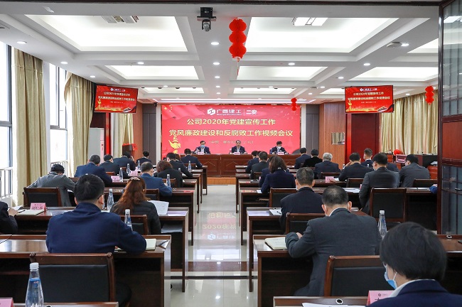 3月10日,广西建工集团第二安装建设有限公司党委在七楼会议室召开2020年党风廉政建设和反腐败工作视频会议。公司党委书记、董事长潘海洪出席并讲话,党委副书记、纪委书记、工会主席黄水保作工作报告,党委副书记、总经理赵泽俊主持。公司领导班子成员莫雄清、林建明、韦智中、江静、陶兴南参加。