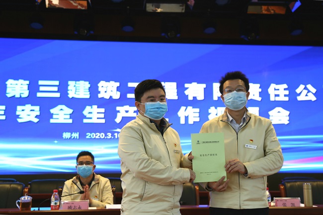 3月10日上午,广西建工集团第三建筑工程有限责任公司在十二楼会议室召开2020年安全生产工作视频会议。公司党委书记、董事长欧志永出席并讲话,公司党委副书记、总经理张凯作安全生产工作报告。领导班子成员罗振中、刘剀、李克领、梁德初、张青蓝、曾宇博参加,覃承敏主持。