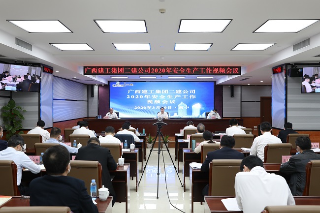 3月10日,广西建工集团第二建筑工程有限责任公司在建工大厦2号楼912会议室召开2020年安全生产工作视频会议。集团公司副总经理、二建公司党委书记、董事长赖榆出席并讲话,党委副书记、总经理徐木新作安全生产工作报告。领导班子成员黄志坚、苏维明、廖宏福、卢军宝、卫奕忠、叶彤、覃伟、袁小军参加,黄元华主持。