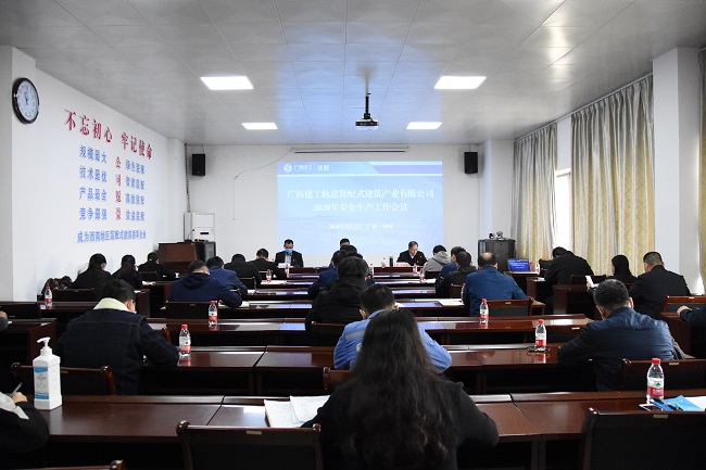 3月12日,广西建工轨道装配式建筑产业有限公司召开2020年安全生产工作会议。公司党总支书记、董事长秦元出席并讲话,公司党总支副书记、总经理覃幼辙作安全生产工作报告,公司副总经理、工会主席吴承修主持。