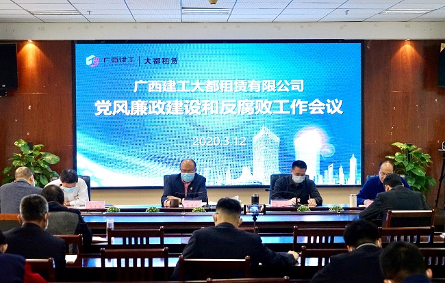 3月12日,广西建工大都租赁有限公司党总支在1131会议室召开2020年党风廉政建设和反腐败工作视频会议。公司党总支书记、董事长黄安权出席会议并讲话,副总经理陈树华作工作报告。公司领导班子成员唐广衎、赖坤权参加,邓彦超主持。
