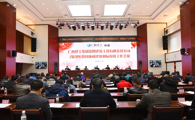 3月17日,广西建工集团第四建筑工程有限责任公司党委在总部305会议室召开2020年党风廉政和反腐败工作视频会议。公司党委书记、董事长杨俊出席并讲话,党委副书记、纪委书记、工会主席余耀森作工作报告。党委副书记、总经理龙安宝主持会议,在家领导班子成员黄晖、蒋建成、俞锦源、周成参加。