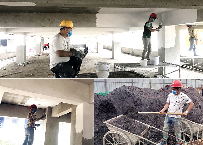 从2月6日开始,项目部管理人员通过各种途径购买电子测温仪、医用口罩、消毒水、手套等防疫物资,完善防疫相应设施设备,做好了复工防疫的全面准备工作。为了“抢”到更多的工人,早日恢复生产,项目部采取统一包车的形式从四川、贵州多地陆续将工人接回,并全面做好人员登记排查和防疫物资发放工作,保证了项目在3月1日实现正式复工,目前共有234名工人进场施工,进场率达到97%,项目复产率达到90%。