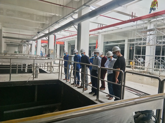 考察团一行先后到公司承建的南宁市心圩江环境综合整治工程PPP项目下游污水处理厂工程、中国石油广西石化含硫原油加工配套工程厂区化学水处理站扩建工程等项目进行考察,详细了解项目规模、现场情况及施工资料等,对项目优良施工水平和公司综合实力表示赞赏。