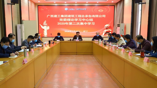 3月30日,广西建工集团建筑工程总承包有限公司党委理论学习中心组2020年第二次集中学习会在13楼会议室召开。公司党委书记、董事长陈祖训主持并作中心发言,中心组成员陆烜、岑廷义、张强、林平均、曾劲松、周兴耀、陆美豪参加。