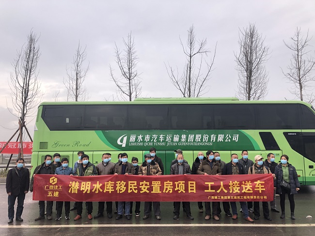 复工复产的重点和难点在劳务人员的组织。2月3日以来,公司通过电话、微信和上门等途径联系劳务队组,对区内劳务队组主要采取协助工人出具用工证明落实属地政府放行,包车、拼车、免费订票等形式组织劳务人员返岗复工。对区外的劳务队组,为降低工人返程过程中的疫情感染风险,以省际包车的形式,从四川、湖南等地“点对点”接回返岗工人,协调属地高速交警开辟绿色通道,确保复工人员安全抵达项目。丽水市缙云县潜明水库安置房项目、柳州市柳东新区双仁屯棚户区改造项目、北海市海城区棚户区改造项目等多个项目采取“点对点”包车接送的方式从四川等地接回部分具有当地村镇相关证明资料的劳务人员1000多名。目前,公司已复产项目的管理人员、劳务人员到岗率基本达到100%,实现满负荷施工。