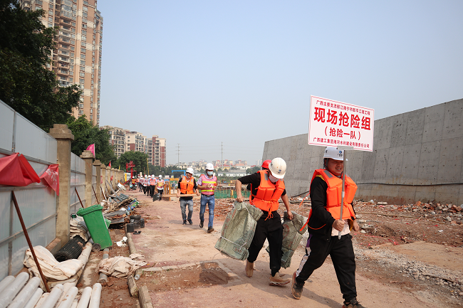 4月9日,广西建工集团海河水利建设有限责任公司在郁江南宁市那平江堤工程土建部分施工及金属结构设备(含安装)工程项目组织开展洪水灾害专项应急演练。