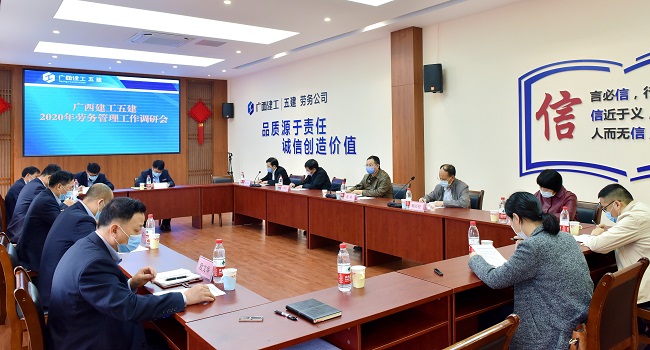 4月14日,广西建工集团第五建筑工程有限责任公司2020年劳务管理工作调研会在劳务公司会议室召开。公司党委副书记、总经理蒙勇出席并讲话。广西建工建筑安装技工学校顾问赖昌程、党支部副书记张铁梅参加。