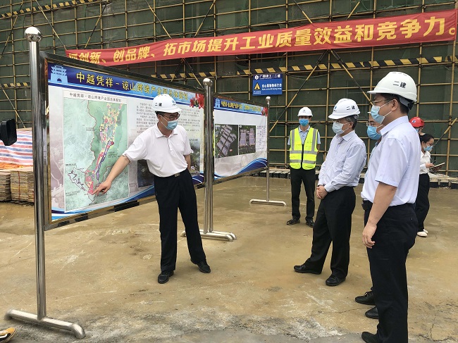 周红波认真听取项目建设进度情况汇报,了解项目复工复产工作情况,并就进一步推动项目建设提出两点要求。一要依据使用单位要求优化建筑设计,确保使用单位能直接入驻。二要严格按照凭祥市委市政府提出的完工节点要求,精心组织团队,优化施工措施,保工期、保安全、保质量,加班加点,攻坚克难,确保按时实现所有厂房今年年底全部投入使用的目标。