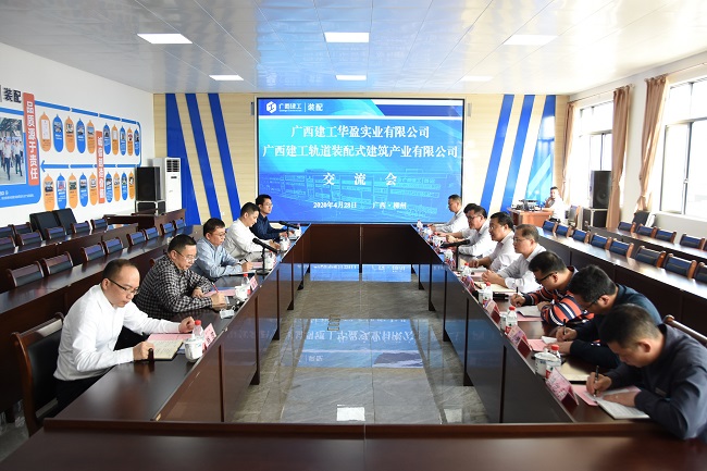 4月28日,广西建工华盈实业有限公司董事长梁鸿天带队到广西建工轨道装配式建筑产业有限公司考察交流。轨道装配公司党总支书记、董事长秦元,党总支副书记、总经理覃幼辙,副总经理、工会主席吴承修,建工华盈公司总经理黄新国、财务总监冷明、副总经理刘发源参加。
