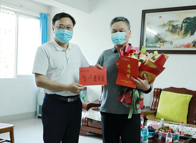 黄鼎龙分别走访慰问抗“疫”工程建设先进个人江家祖,全国劳动模范、离退休老员工黄健,全国优秀农民工、广西五一劳动奖章获得者、广西劳动模范阳雪峰,详细询问他们工作和生活情况,对他们为公司发展做出的贡献表示感谢,希望他们继续发扬劳模精神,传递正能量,为公司发展建言献策。
