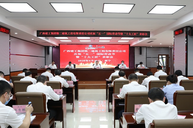 4月30日,广西建工集团第二建筑工程有限责任公司庆祝“五一”国际劳动节暨“十大工匠”表彰会在建工大厦2号楼912会议室召开。集团公司副总经理,二建公司党委书记、董事长赖榆出席并讲话,公司总经理邱国兴、总工程师叶彤参加。公司党委副书记、纪委书记、工会主席黄志坚主持。