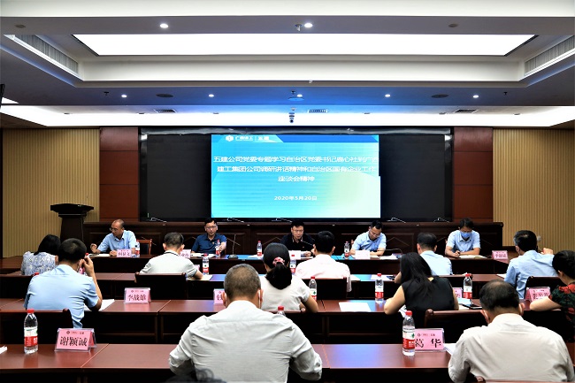 5月20日,广西建工集团第五建筑工程有限责任公司党委理论学习中心组在五建大厦二楼会议室召开第三次集中学习(扩大)会,专题学习自治区党委书记、自治区人大常委会主任鹿心社到集团公司调研讲话精神和自治区国有企业工作座谈会精神,以及集团公司党委关于落实鹿心社讲话精神的“七个不动摇”要求。公司党委书记、董事长黄鼎龙主持,公司党委委员、在家领导班子成员蒙勇、彭业波、李能斌、陈永、何显文、董家胜、陶礼智、岑锦秀参加。