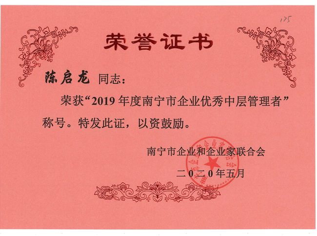 日前,由南宁市企业联合会、南宁市企业家协会组织开展的“2019年度南宁市企业优秀中层管理者”评选活动结果揭晓,广西建工集团智慧制造有限公司3 人获此殊荣,分别为:广西优而敏电子商务有限公司董事长陈启龙、广西建工集团国际有限公司总经理杨婧、广西壮智文化传播有限公司总经理梁晨。