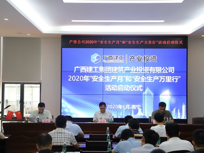 6月9日,广西建工集团建筑产业投资有限公司举行2020年“安全生产月”和“安全生产万里行”活动启动仪式,公司党支部书记、董事长黄洪出席并宣布活动正式启动,总经理欧阳崎宣读活动方案并授安全生产公开课,副总经理舒凯主持。