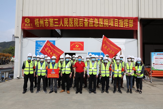 党员领导赖榆靠前指挥当先锋,为成立梧州项目临时党支部揭牌并授旗